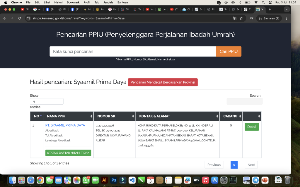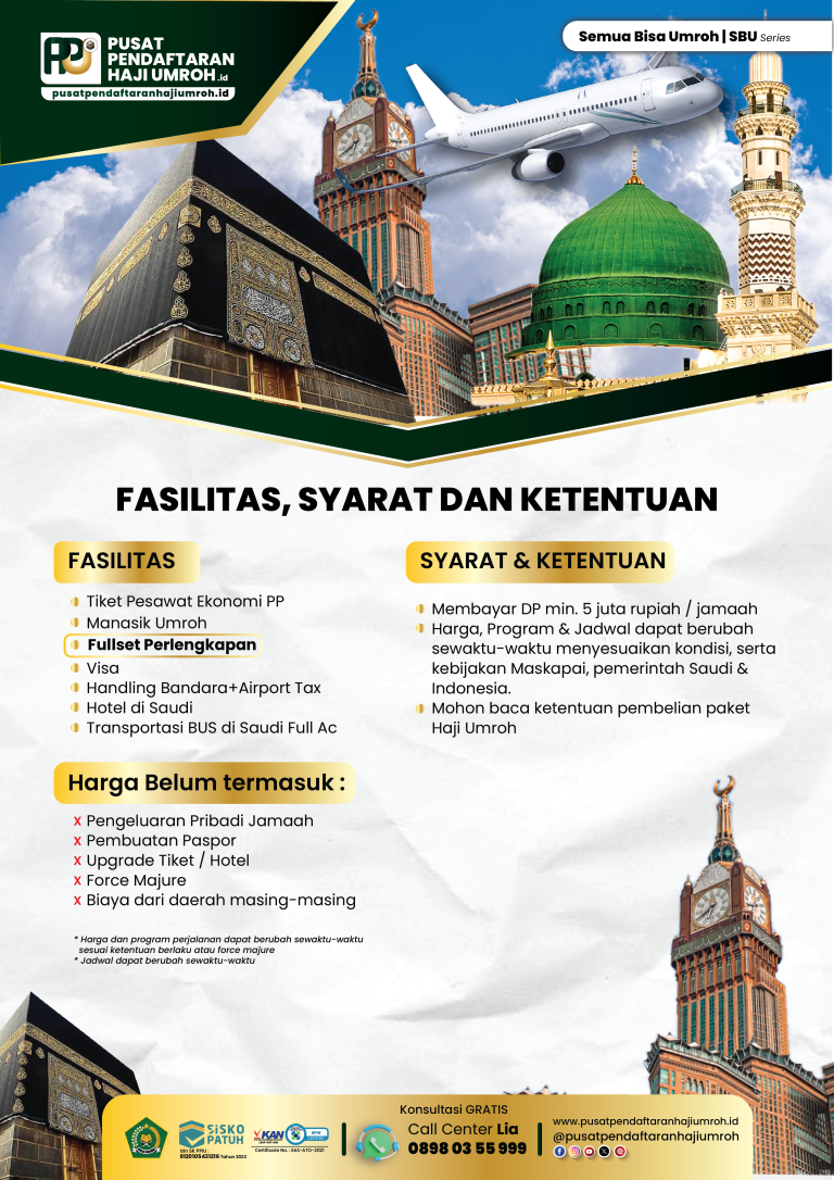 Memiliki izin yang resmi menjalankan aktivitas sebagai Travel Umroh dibawah PT Syaamil Prima Daya dengan Izin PPIU: 9120105431216.